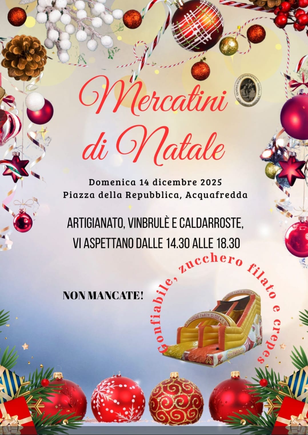 Si informa la cittadinanza che è istituito temporaneamente il divieto di transito e di sosta con rimozione forzata in P.zza Repubblica dalle ore 9:00 alle ore 19:00 del giorno 14.12.2025 per lo svolgimento della manifestazione "Mercatini di Natale"