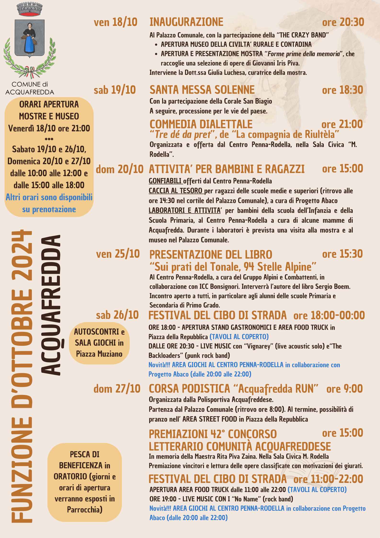 Ottobre è iniziato e come da tradizione non possono mancare gli eventi della nostra FUNZIONE D’OTTOBRE Anche quest’anno il programma è ricco di iniziative culturali, religiose, sportive, ludico-ricreative rivolte a tutta la cittadinanza, dai più piccoli ai più grandi. VI ASPETTIAMO!!!